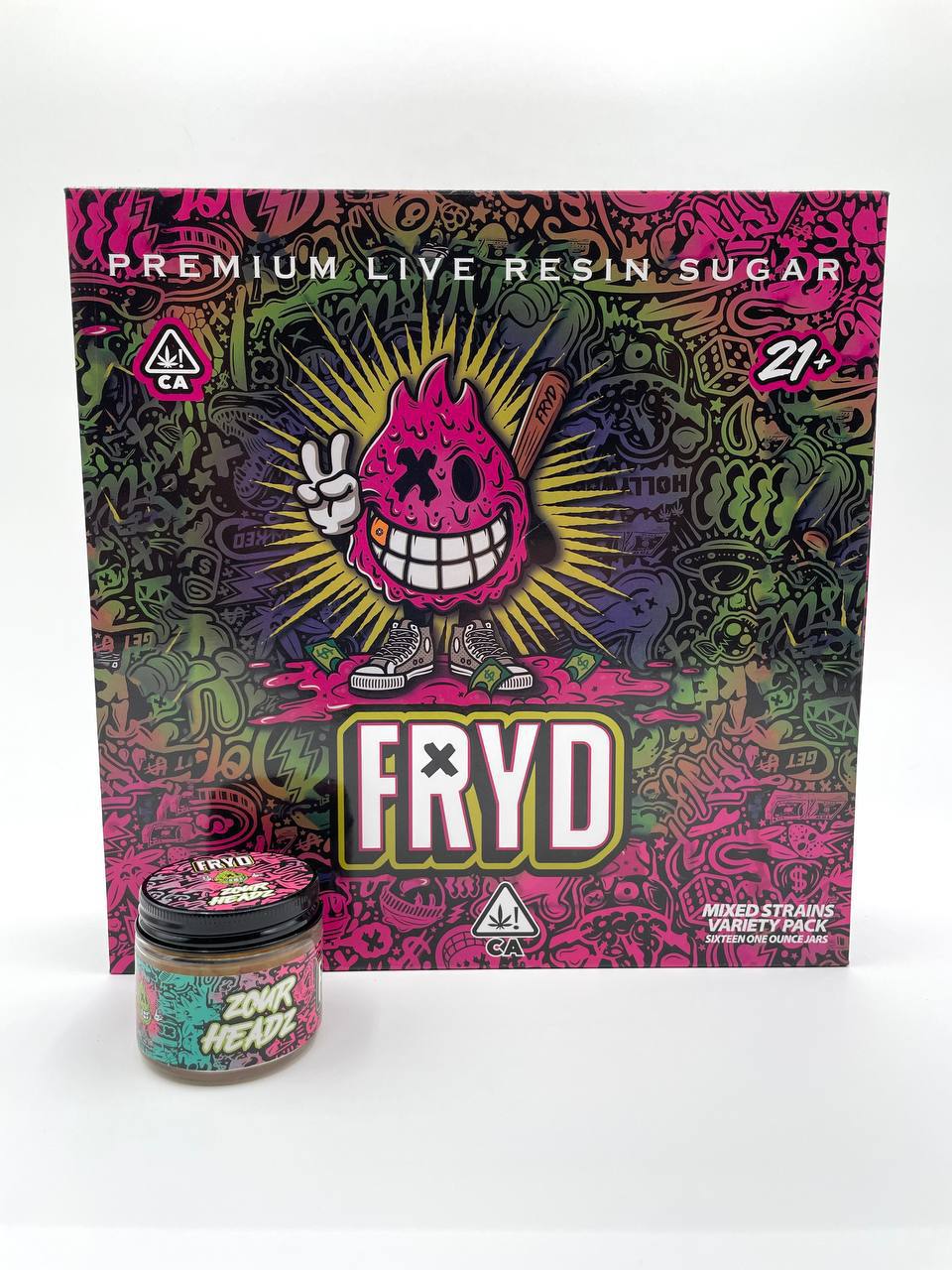The brand name is associated with multiple formats, including fryd live resin diamonds, disposables, and boxed concentrate presentations.