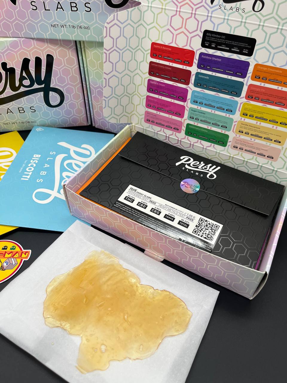 Each package features clean and durable Persy slabs packaging, designed to protect the integrity of the concentrate while keeping it fresh and potent.