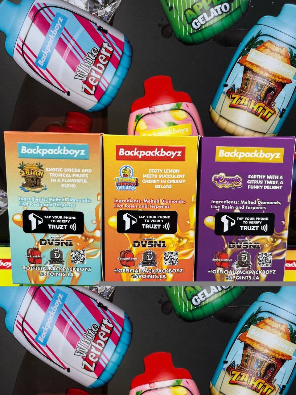 Backpack Boyz collaborates with elite cultivators to bring iconic genetics into vapor form. Popular strains include: