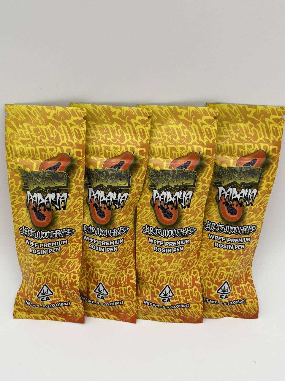 When combined, Papaya x Bolo produces a complex flavor profile with notes of tropical fruit, creamy sweetness, and subtle earthy gas. This unique genetic pairing makes the Life Is Not Grape Papaya rosin vape one of the most flavorful live rosin disposable vapes available.