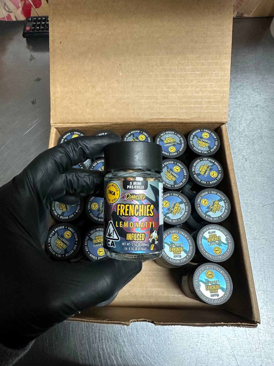 The connected frenchies pre rolls are not your average joints. These are expertly crafted frenchies infused pre rolls made using premium Frenchies strain flower as the base. Each preroll is:
