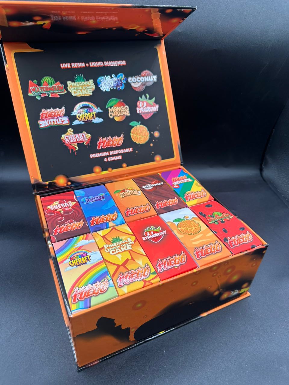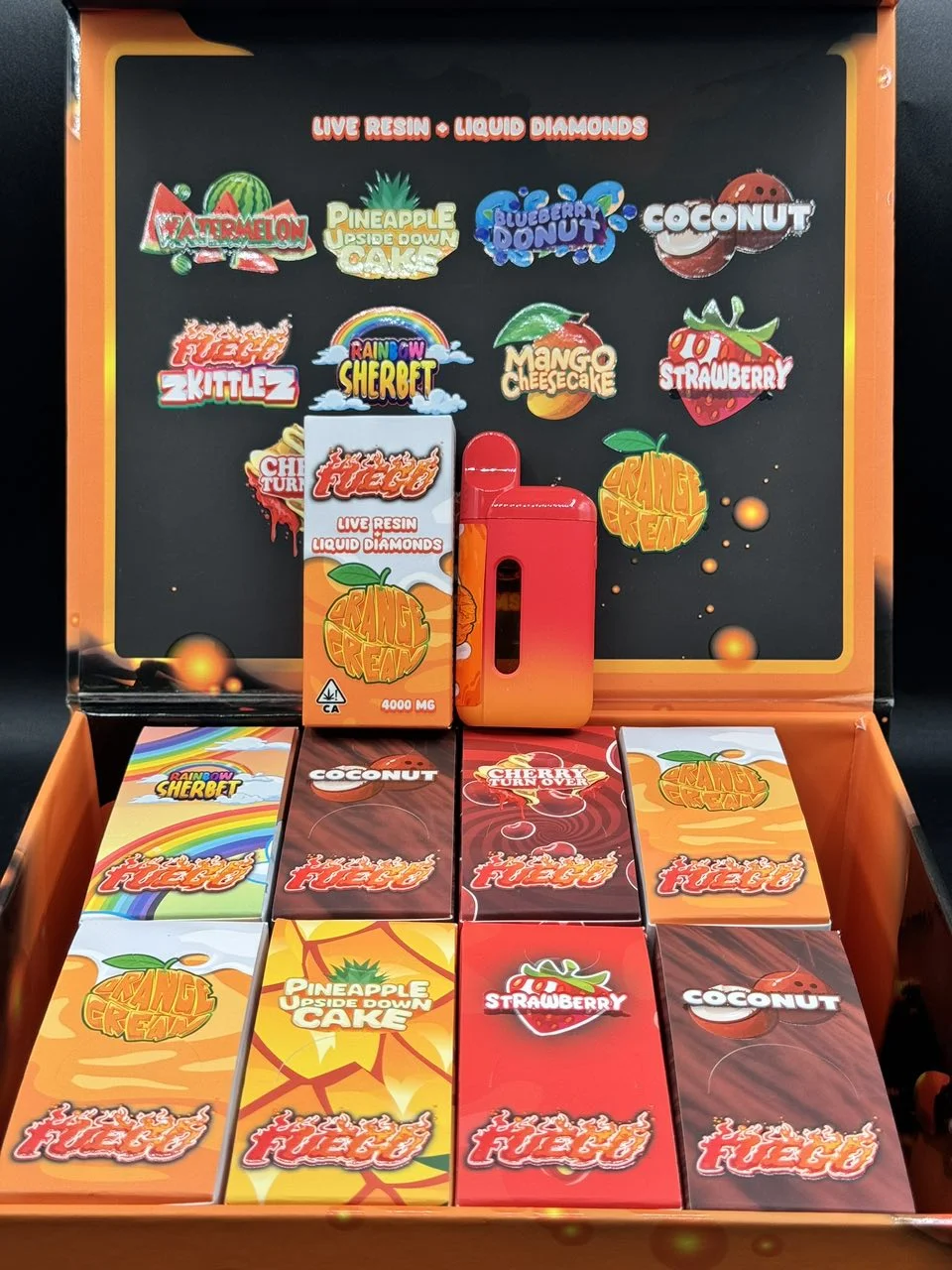 The fuego disposable live resin collection features a wide selection of strain profiles, including: