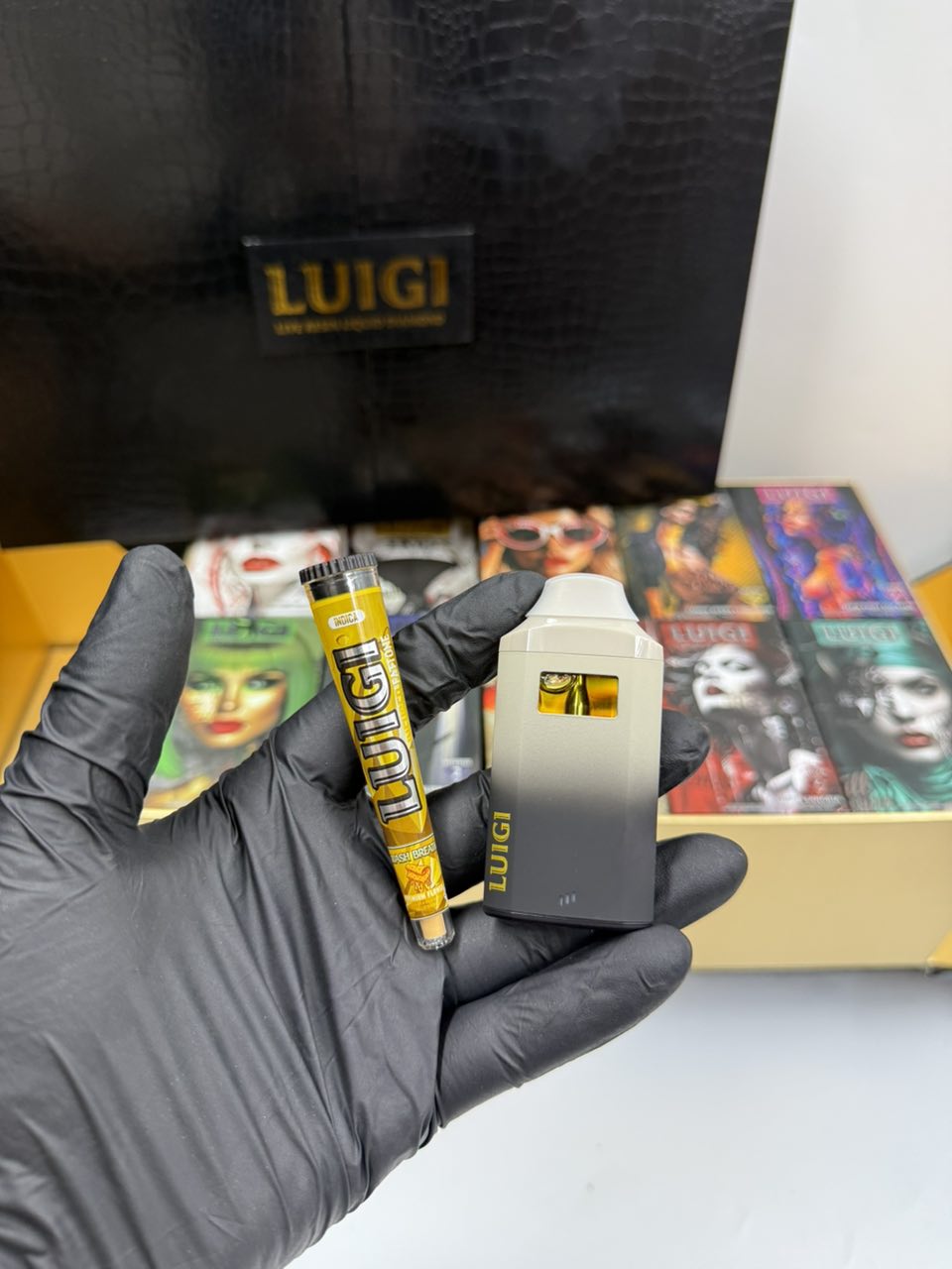 The Luigi 2G Disposable is a rechargeable, all-in-one vape prefilled with 2 grams of premium live resin liquid diamonds, paired with a complimentary pre-roll for added versatility. Often called the black box Luigi 2G disposable, Luigi disposable with pre roll, or Luigi disposable 2G black box, this product offers both modern vaping and classic flower enjoyment in a single bundle. Luigi 2G Black