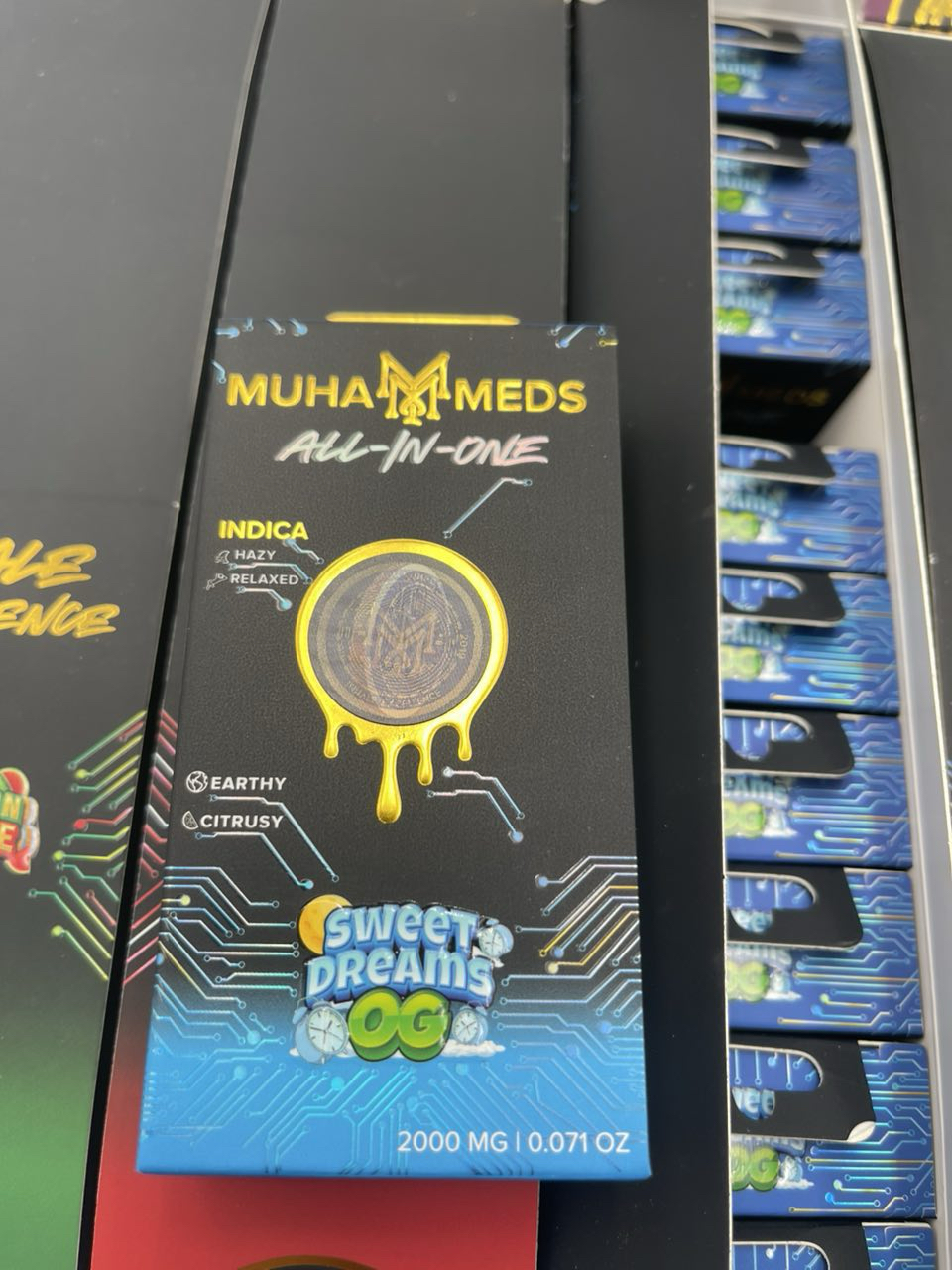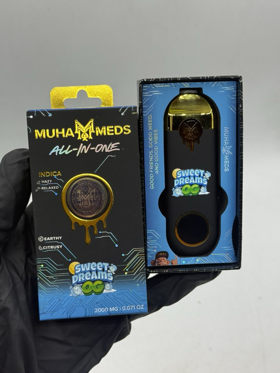 The Muha Meds 2G disposable all in one (also known as muhameds 2g all in one or 2g Muha disposable) is a ready-to-use vape device prefilled with 2 grams of premium cannabis oil. There’s no need for separate cartridges, batteries, or refills—everything is built into one compact, portable unit.