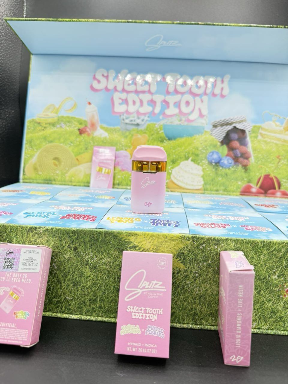 The Splitz 2G Sweet Tooth Edition Disposable sets a new benchmark for flavor-forward cannabis vaping. With its high THC potency, live resin quality, dessert-inspired genetics, and user-friendly design, it’s built for those who want more from every puff.
