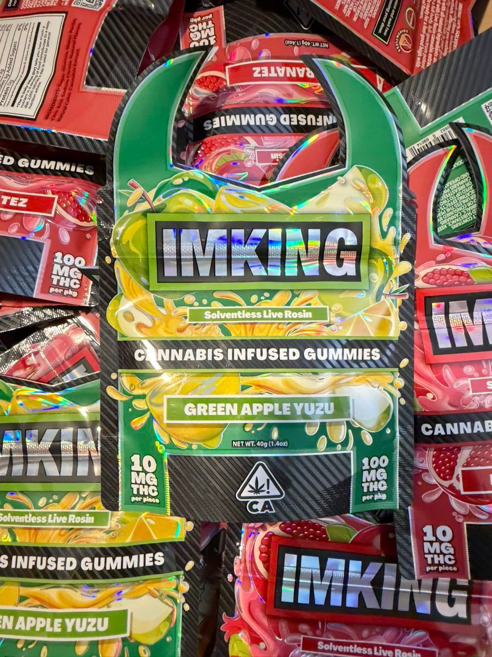 The imking solventless live rosin cannabis gummies are carefully formulated cannabis infused solventless hash rosin gummies that deliver consistent dosing and long-lasting effects. Each pack of imking 100mg gummies contains premium-quality cannabis extract infused into soft, flavorful gummies for a balanced edible experience.